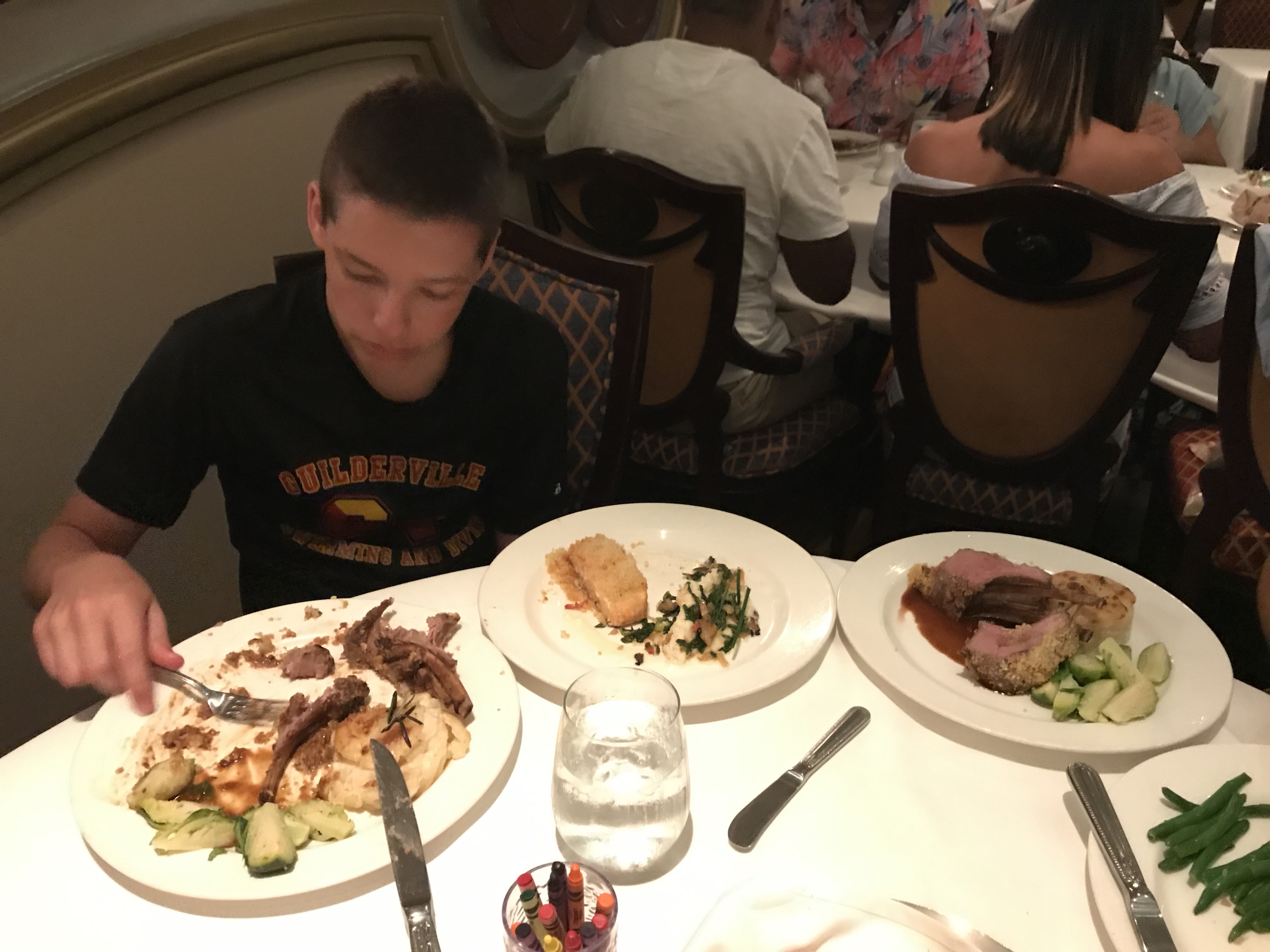Don’t underestimate their own comfort level with dining alone either. My tween went up to the buffet on his own for his second or third lunch almost daily. He’s an athlete and eats a lot. And when we scheduled an adult-only dinner at Palo, I offered room service or grab a bite on the pool deck, but our boys, a tween and teen, both wanted to go to the main dining room we were scheduled for that night on their own!