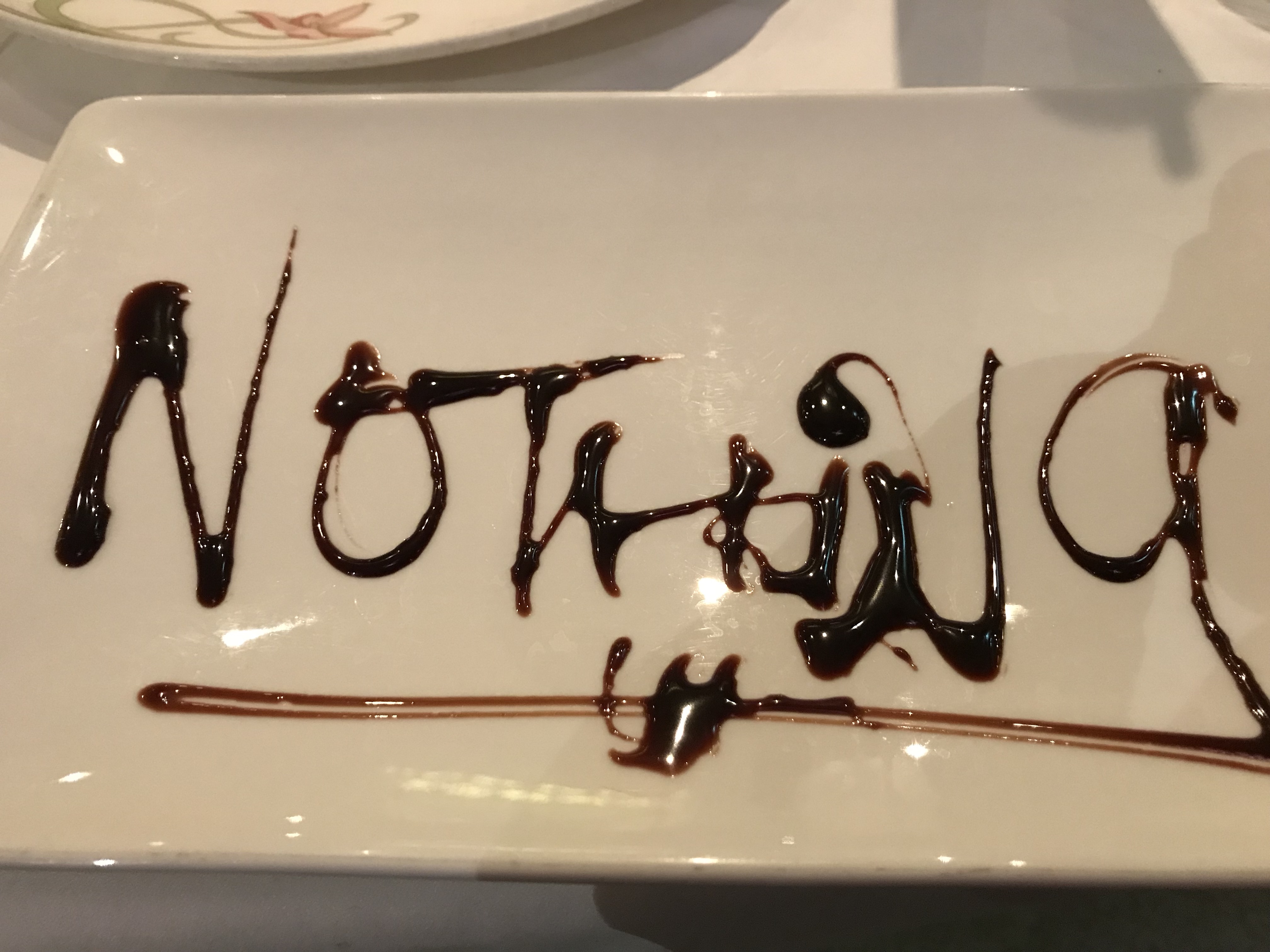 They loved our server and wanted to see him. We met them there towards the end of their meal and were greeted by our table neighbors saying what well-behaved and mature children we have. They were well taken care of by our servers, my little athlete had 3 cleaned plates in front of him, a regular occurrence, he ordered 3 meals every night. But he rarely eats dessert, much to the dismay of Hector, their favorite server. So one night after hearing nothing over and over again while the rest of us ate dessert, he brought a plate of NOTHING!