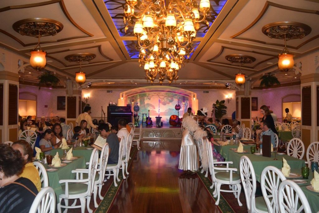 You can find Animator’s Palette on every ship, but each has its own unique spin. The other main dining rooms, depending on which ship you choose, may be themed for Tiana, Tangled (complete with Rapunzel, Flynn, and a few ruffians), or an enchanted garden…just to name a few.