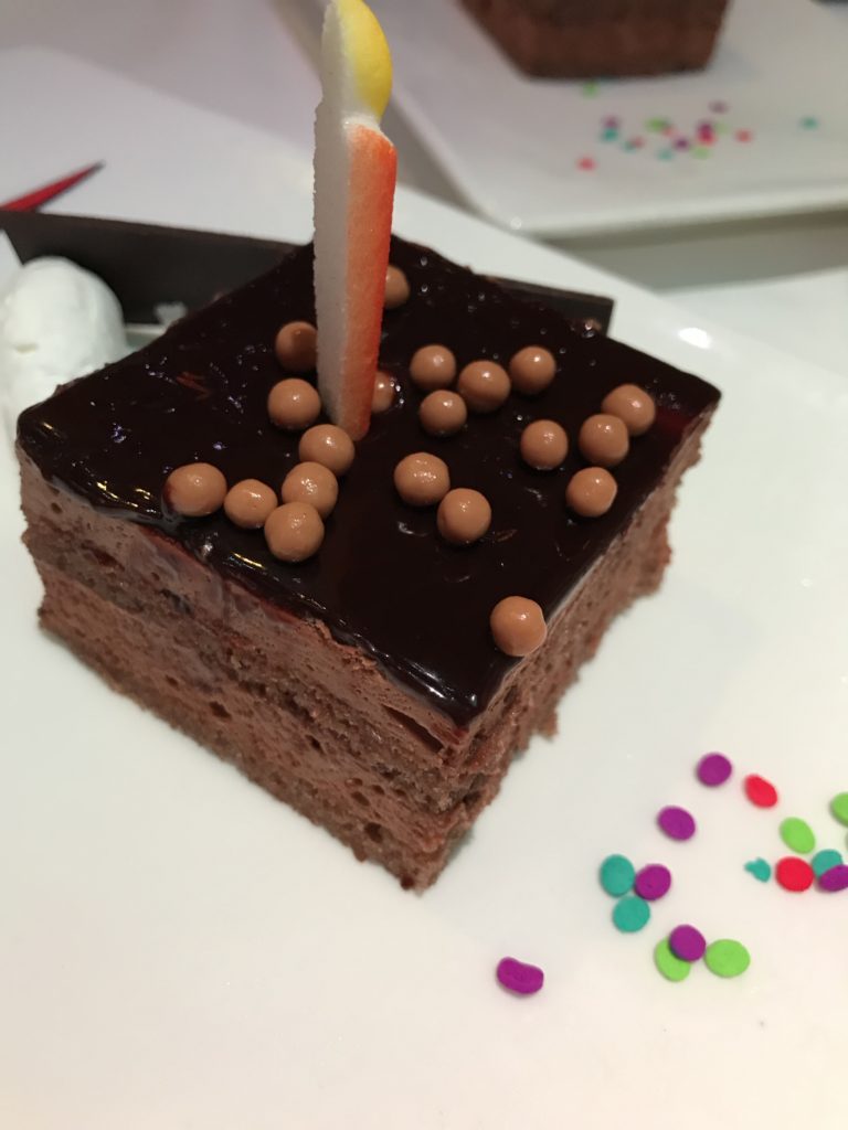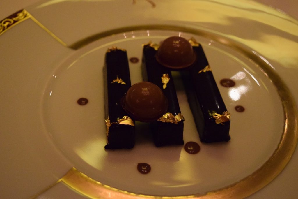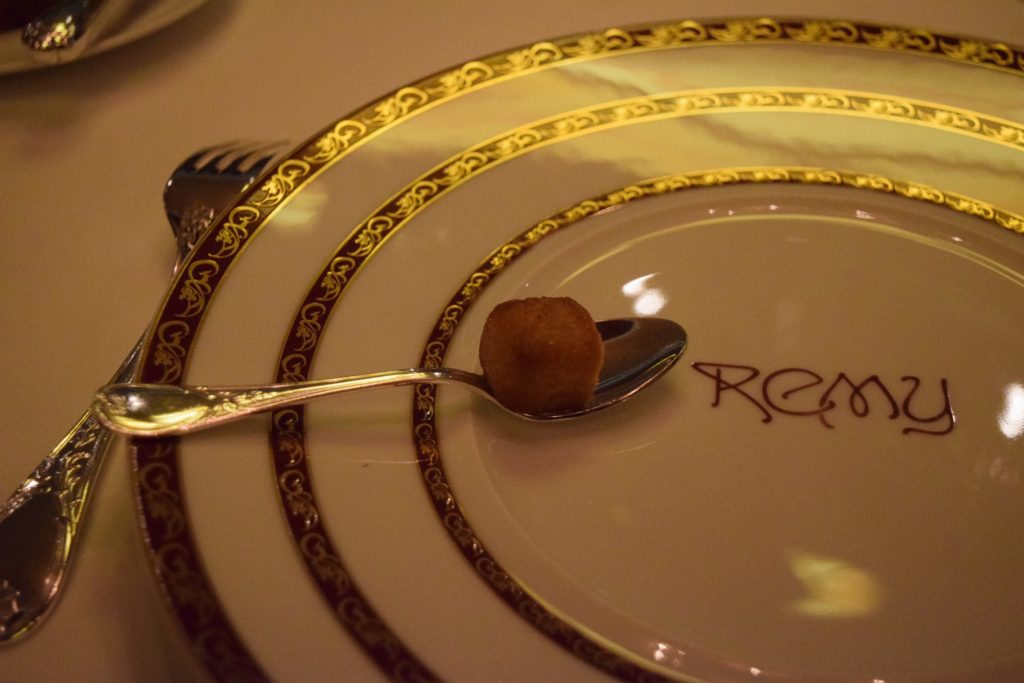 Remy is another adult-exclusive restaurant. This French gourmet dining experience is available aboard the Disney Dream and Disney Fantasy. Brunch and Dinner are available to be booked in advance. Again, it is popular and reservations can be hard to come by. Why yes, that is gold leaf on the chocolate dessert!