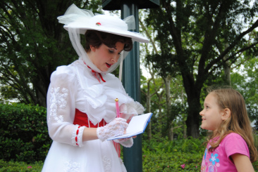 There are cast members at Disney theme parks whose only job is to take photos of guests. As you walk through the parks, resorts, and restaurants, you’ll see these PhotoPass photographers in some of the best spots. They’re easy to recognize in their uniforms: navy pants or shorts; white shirts; khaki cargo vests; and, of course, camera equipment. 🙂 (Those on Main Street in Magic Kingdom have white pants instead of navy.) Just walk up to them, they’ll take your photos — sometimes even using props or special poses — then they’ll scan your MagicBand. Easy-peasy!