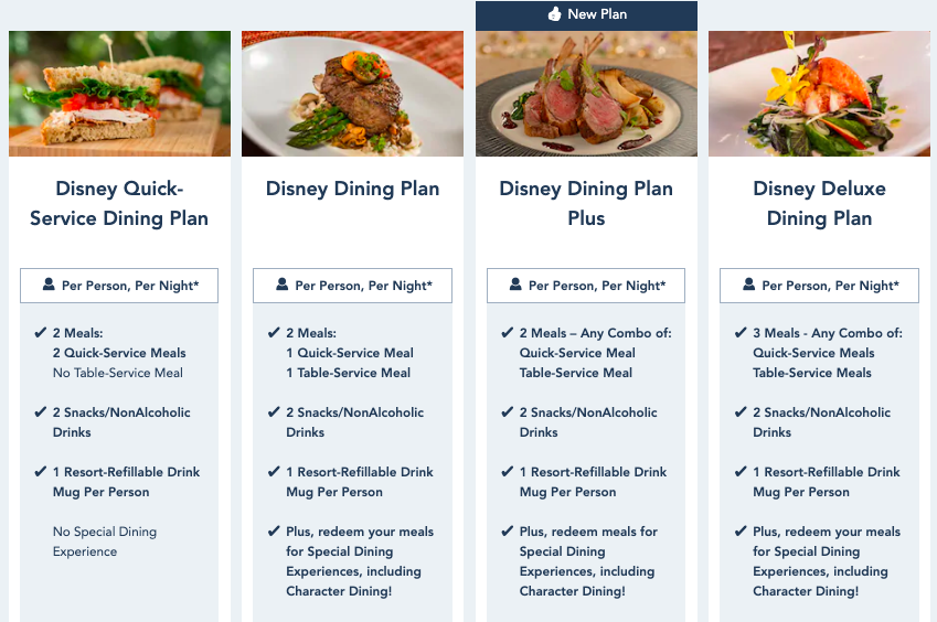 A new dining plan option was launched this week for Walt Disney World Resort. This new plan — Disney Dining Plan Plus — sits between the “regular” Disney Dining Plan and the Deluxe Disney Dining Plan. It offers the same quantity of credits as the middle plan, but with more flexibility.