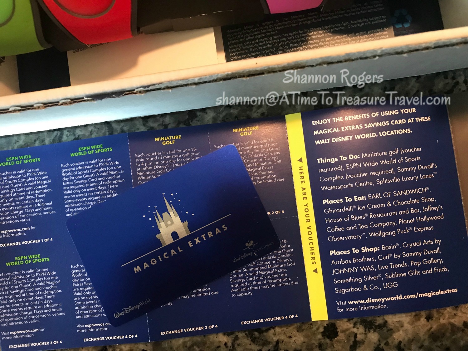 One perk of booking a Walt Disney World Resort vacation package is the Magical Extras, a savings card offering exclusive discounts all around Walt Disney World! If you’ve booked a package (on-site room + tickets and/or dining plan), you’ll find this card tucked away inside your MagicBand box, so be sure you don’t overlook it!