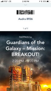 This is the fun (and easy) part! At any time during your one-hour FASTPASS window, go to the FASTPASS line at the chosen attraction. Open the App, click “Redeem FASTPASS,” and scan the bar code for entry into the FASTPASS line. Enjoy the ride!
