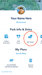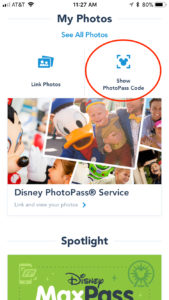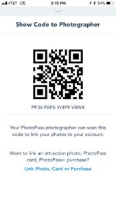 As an added bonus, your Disney MaxPass purchase also includes all the photos of your family taken by Disney photographers on that day, as well as your ride photos. Go back to that main screen on the App again. If you scroll down toward the bottom, you will see a section labeled “My Photos.” Tap “Show PhotoPass Code.” This QR Code is what the Disney photographers will scan each time they take your family’s photo, in order to link the pics with your account. Take a screenshot of your PhotoPass code, so you don’t have to hunt it down in the app every time.