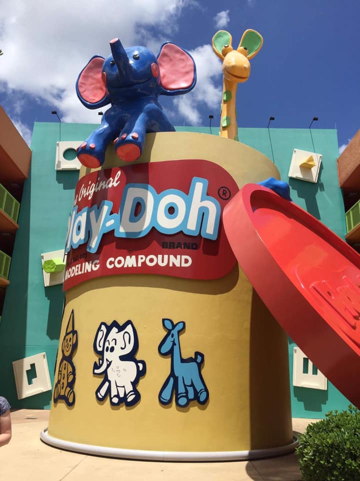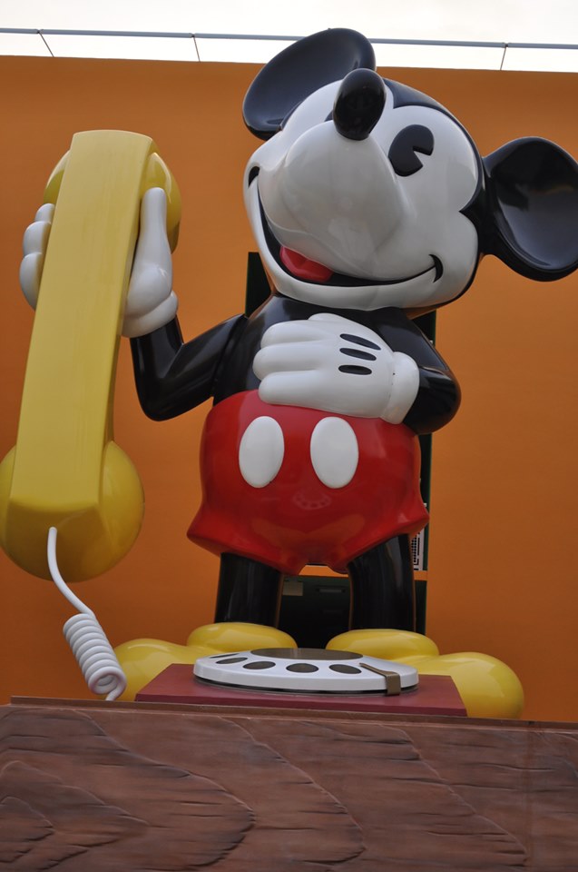 Disney Imagineers worked with some of the original manufacturers to recreate the resort’s icons, which include a giant Mickey phone, Rubik’s cube, and Mr. Potato Head. Original toys and objects were obtained and then digitized. A machine then created a full-size foam replica based on the exact measurements of the icon. Fiberglass covers the foam, which was then replaced with a steel armature. The final covering completed the creation of the icon.
