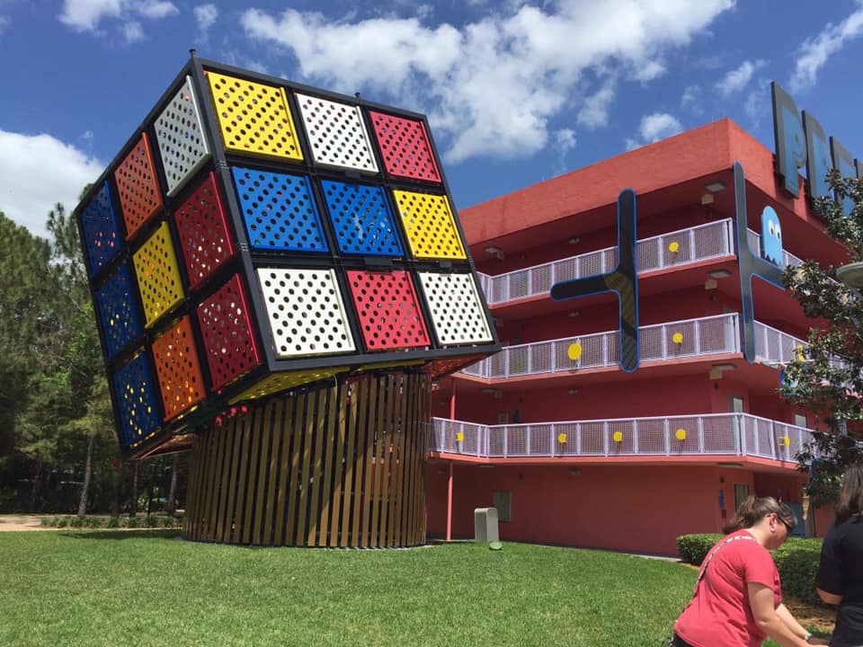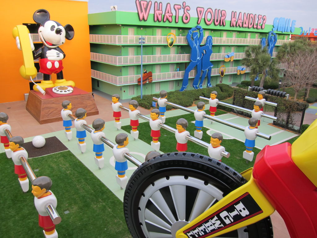 This bright and colorful value resort boasts theming that spans popular decades from the 1950s to the 1990s, celebrating the way people lived, worked, and communicated. Larger-than-life icons dot the landscape, and music piped in to each section help immerse you in that genre.