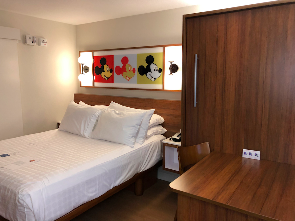 The rooms at this Value Resort were all refurbished in 2018 and now feature a Queen size bed and a Queen size Table bed that pulls down from the wall. (They used to only have Full-size Beds in the rooms.)