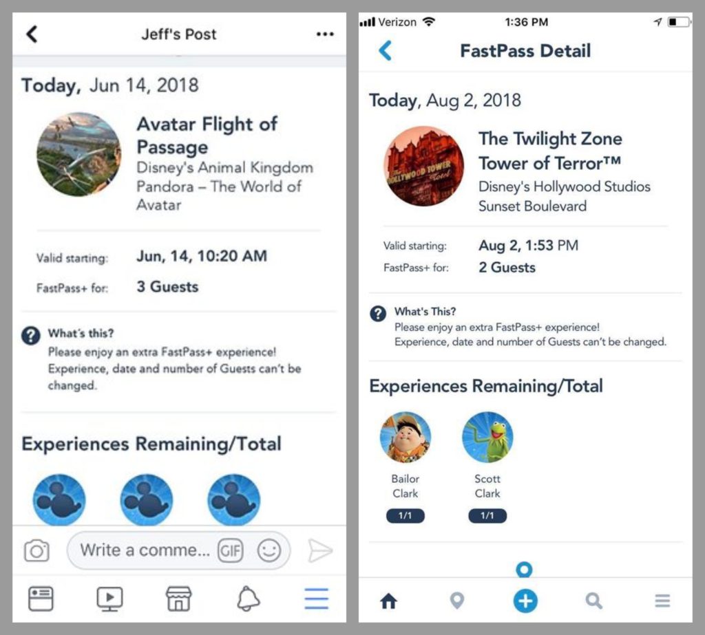 - Adult #2 and the other members riding the second time get to go through the fastpass line. You’ll be able to see this in your MyDisneyExperience app as a normal fastpass. It will show the exact guests riding the second time.