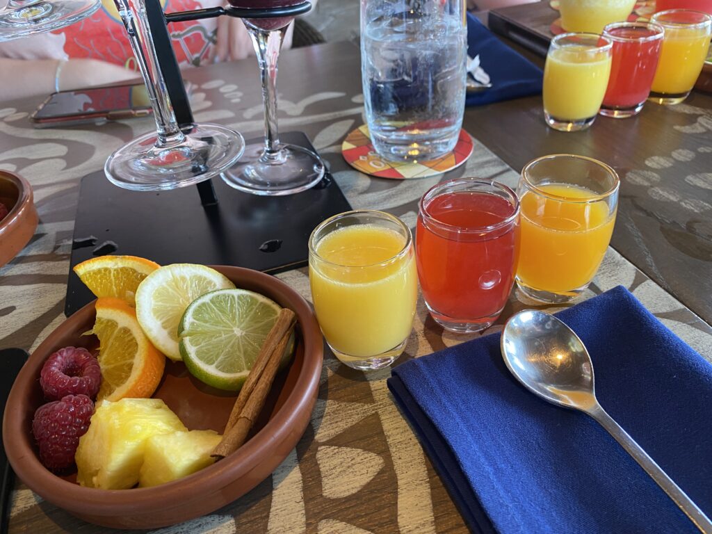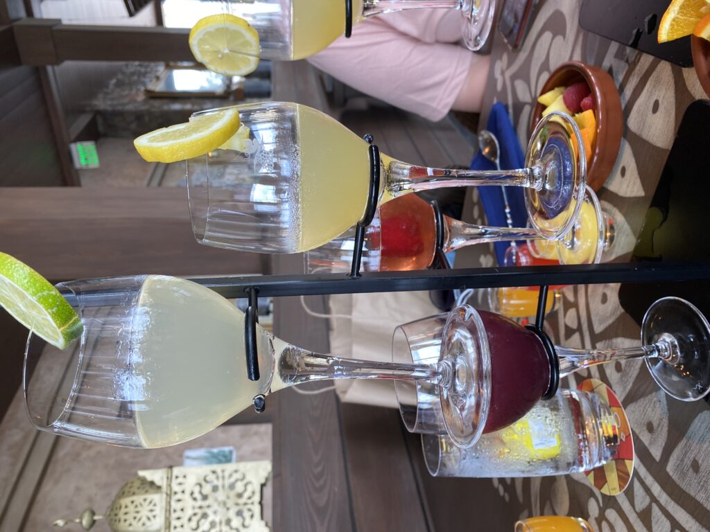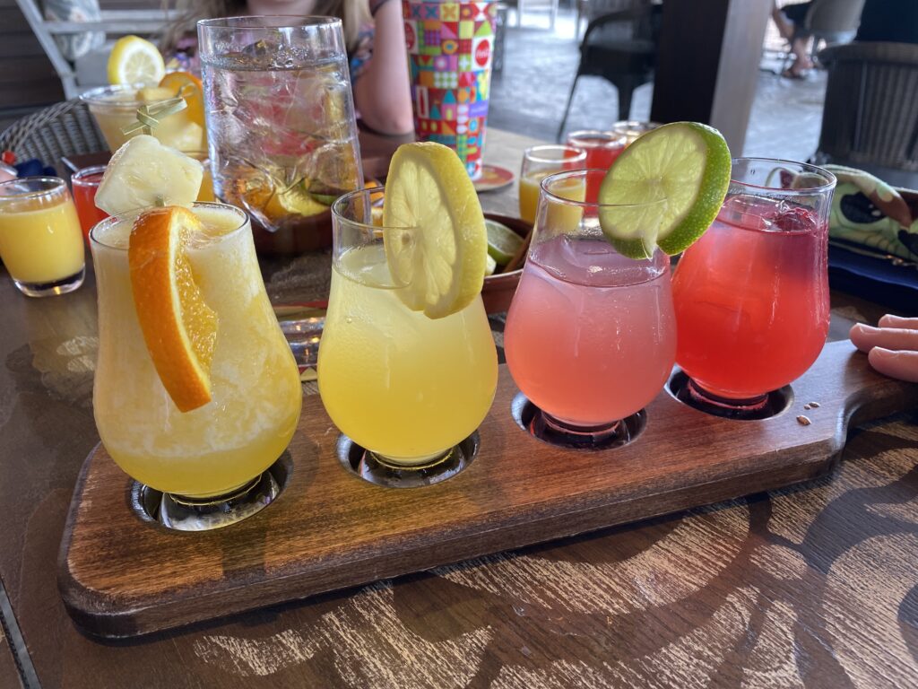 A sampler of lemonades is available for Guests under age 21 (or adults who don’t wish to drink alcohol) From left to right: Frozen pineapple, guava, pomegranate limeade, raspberry