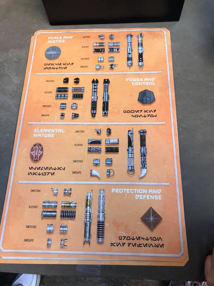 We arrived about 15 minutes early and we were told to come back to check in about 5 minutes before our scheduled time. They did direct us to the left of the table to look in a drawer system to pick out which of the four options you like best for the handle of your lightsaber.