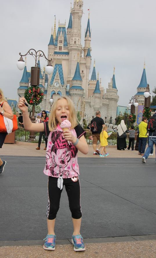 This is my daughter Evie with her second ice cream of the day in front of Cinderella’s Castle. The sugar rush was worth it!