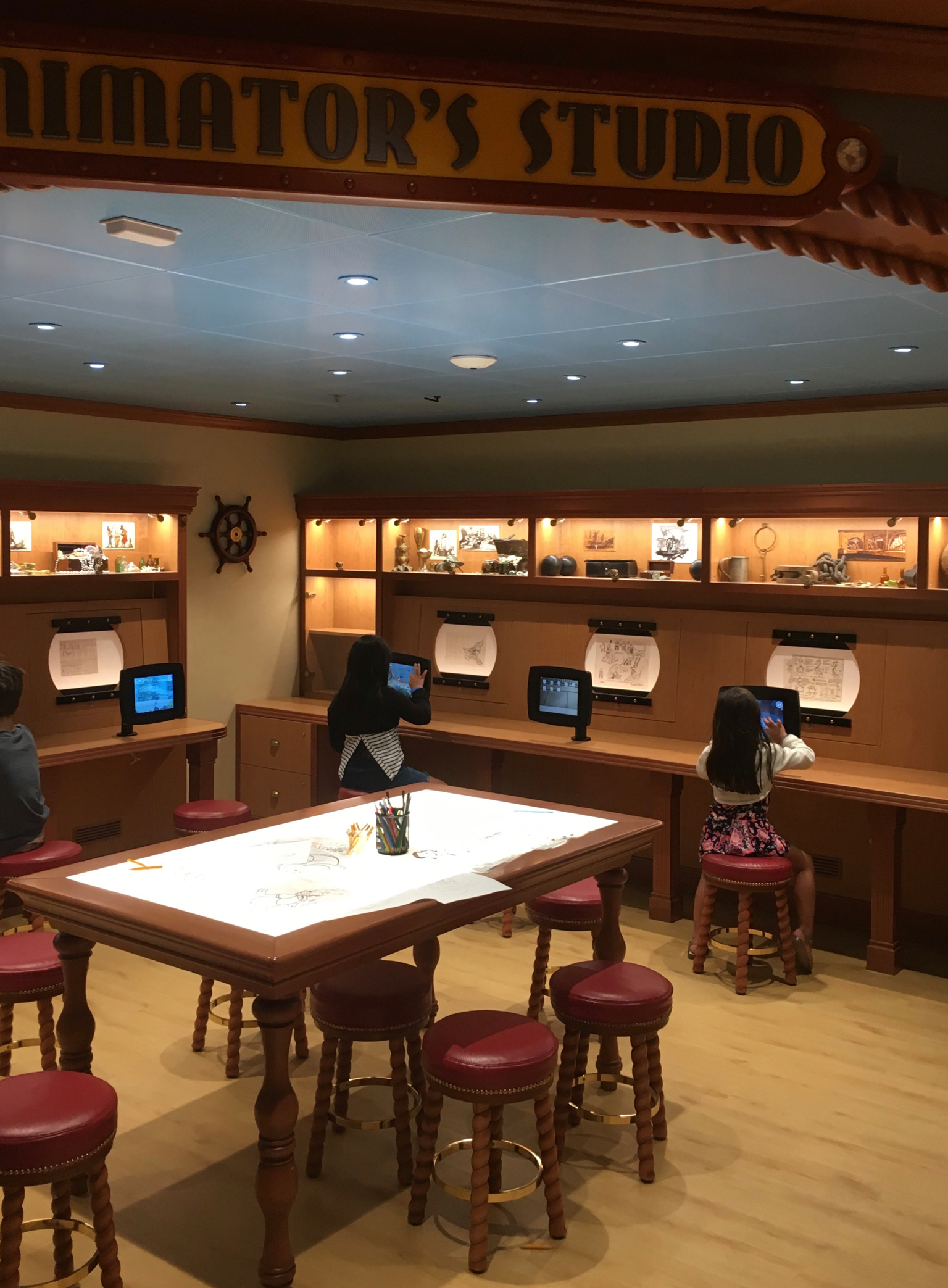 I spent my first hour or so onboard wandering the ship. Even though I traveled without children on this trip, I stopped by the open houses for the It’s a Small World Nursery and the Oceaneer’s Club and Lab. The nursery was bright and inviting, with everything one can imagine a child under the age of three might need to be happy – highly trained and attentive youth counselors, soft play mats, toys, cribs, and changing areas. The Oceaneer’s Club and Oceaneer’s Lab, for potty-trained children between the ages of three and twelve, are equally impressive. Kids can enjoy interactive games, crafts, dance parties, movies, character appearances, and more! I really wished I could stay and play in Andy’s Room myself.