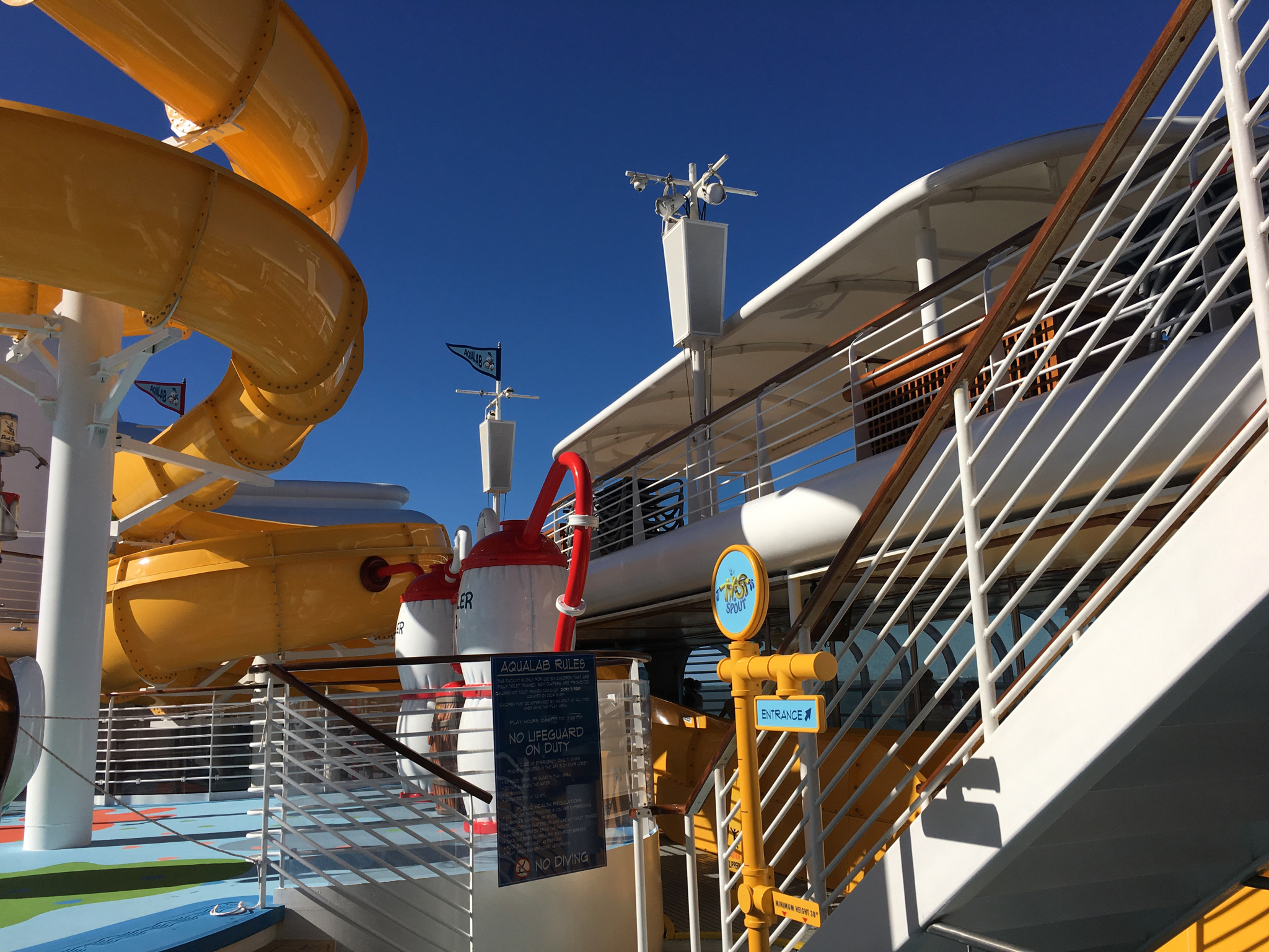 If you’re worried that you won’t find anything to do…don’t! Each day, a Navigator with a schedule of activities will be delivered to your stateroom. If you’d rather not carry a piece of paper around, download the Disney Cruise Line Navigator App for your smartphone. Once onboard, you’ll be able to access the schedule for your cruise. There are ship tours, trivia games, bingo, character meet and greets, wine tastings, mixology classes, shopping, and first-run movies to see, just to give you a few ideas. Swim in Goofy’s Family Pool, make a splash at Mickey’s Splash Zone, ride the Twist ‘n’ Spout water slide, or watch a family movie on Funnel Vision.