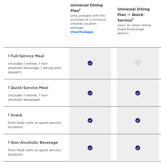 The Full Service Universal Dining Plan is only available to guests pre-booking a vacation package that includes accommodations at an on-site Universal Orlando Resort hotel. Your Universal Resort Specialist with A Time To Treasure Travel can help you choose which hotel and package is right for you and help you maximize the value of this dining plan.