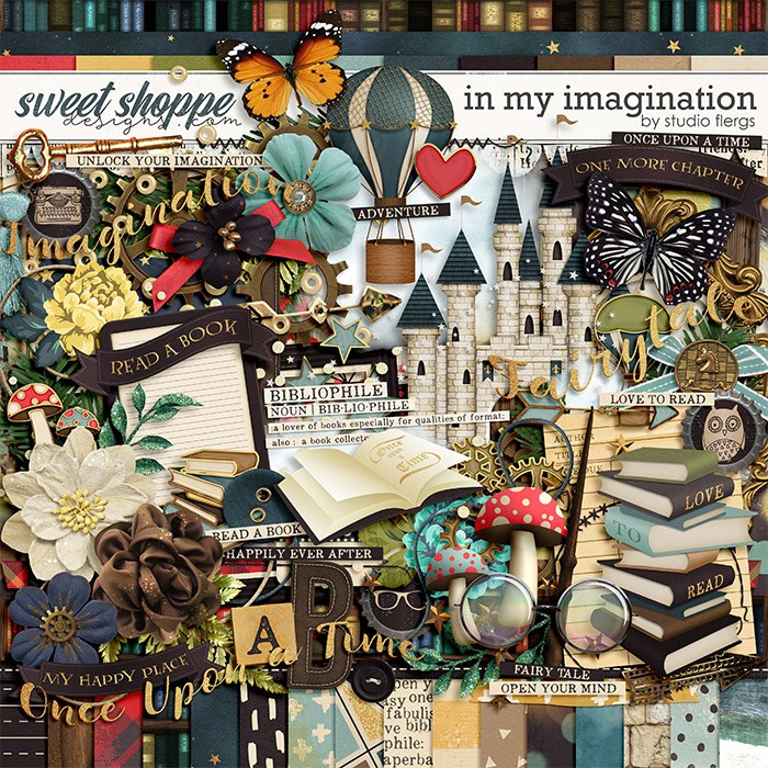 Calling all book lovers! Celebrate your love of books with this magical kit. Fairytales, fiction, whatever your favorite genre or book is, In My Imagination is perfect to help you scrap about your love of books.