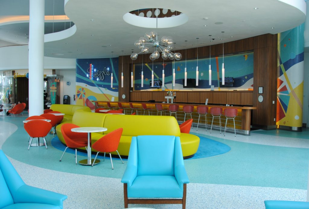 There are multiple dining options, including Galaxy Bowl, a poolside bar and grill, Swizzle Lounge which is open in the evenings, and the family-friendly food court, Bayliner Diner. Many options to eat in or take out. I was happy with healthy options like a salad bar; my kids loved the frozen yogurt bar with choose-your-own toppings!