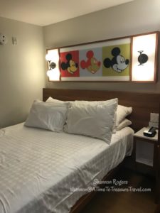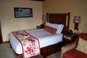 Room types and sizes can range from standard rooms of about 344 square feet to suites over 1,000 square, sleeping up to 4 guests (plus an infant). Most rooms have 2 Queen beds or 1 King bed, but may also have an additional twin-size daybed. Since the majority of rooms have a patio or balcony, views really come into play at the Deluxe Resorts. Rooms could look out upon parking lots, pools, natural bodies of water, wooded areas, theme park, or may even offer a view of a theme park fireworks! Animal Kingdom Lodge offers rooms overlooking one of three animal savanna habitats.