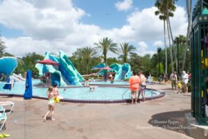 Pools at the Moderate Resorts are large, themed pools, smaller “quiet” pools, and hot tubs. Guest will find water slides here, too.